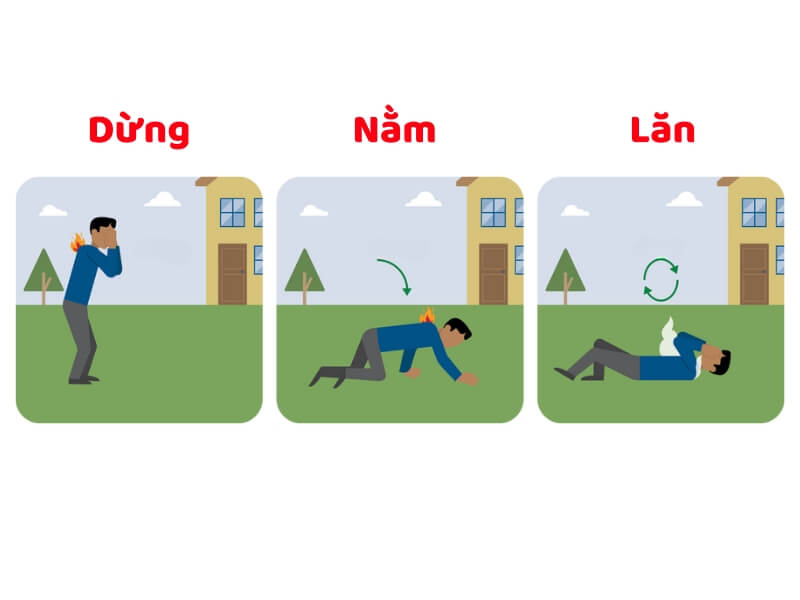 • Lăn qua lăn lại trên ngọn lửa để dập tắt chúng. Việc lăn người sẽ làm ngọn lửa mất oxy và tắt dần.
